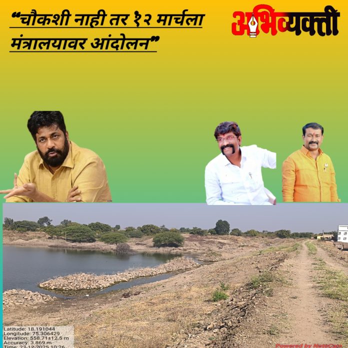 दरम्यान, या प्रकरणात तात्काळ उच्चस्तरीय चौकशी करून अहवाल सार्वजनिक करण्यात यावा व दोषींवर कारवाई करण्यात यावी; अन्यथा १२ मार्च २०२६ रोजी मुंबई मंत्रालयासमोर जलसंधारण विभाग सचिवांच्या दालनासमोर प्रहार संघटनेच्या वतीने महिला मोर्चा तसेच जागरण-गोंधळ आंदोलन करण्यात येणार असल्याची माहिती शहराध्यक्ष अजित भाऊ कुलकर्णी, तालुका अध्यक्ष संदीप तळेकर व संबंधित शेतकरी बांधवांनी दिली आहे.